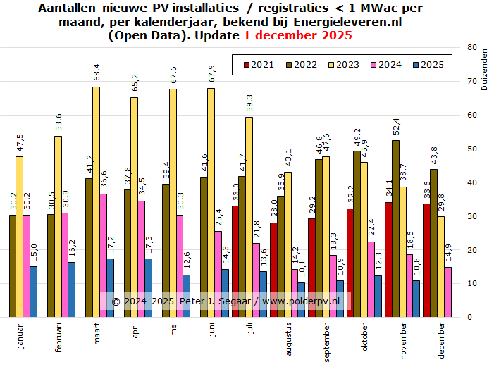 zijn in de eerste elf maanden van 2025 er nog maar 150.320 nieuwe installaties